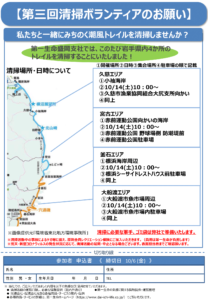 ※荒天・新型コロナウィルスの発生状況に応じて、清掃活動の延期・中止となる場合ございます。